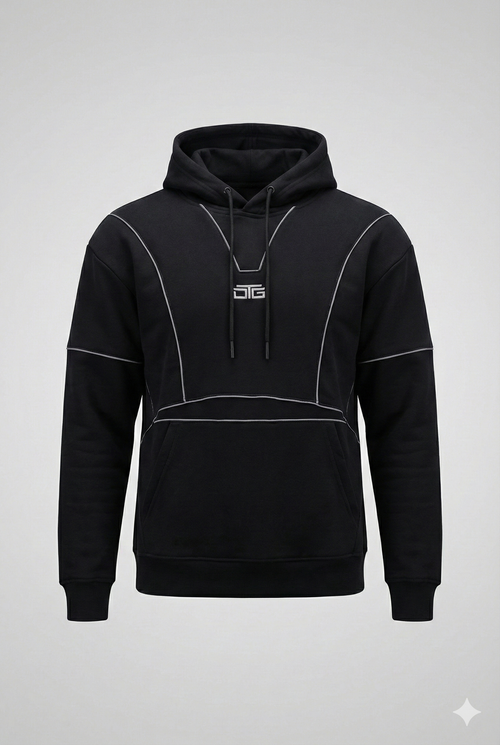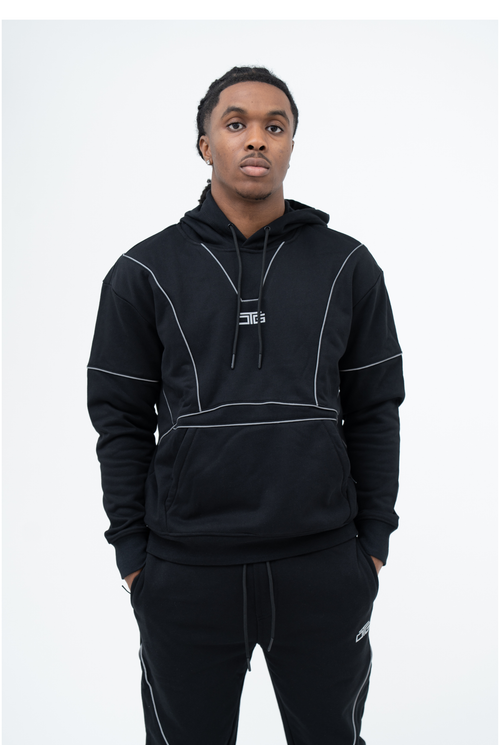 Reflective Piping Hoodie - Black